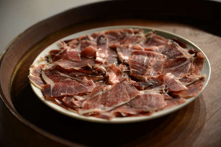 Plate with Iberian ham. Top quality Spanish ham from the Extremadura area.