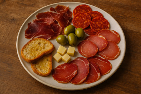 Assortment of Iberian ham and traditional Spanish sausages and cheese