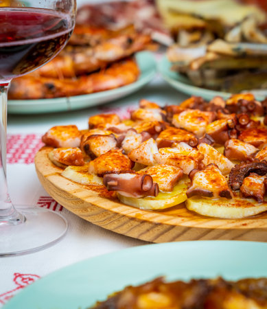 Typical spanish octopus food and dishes served in a restaurant