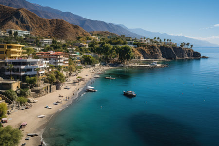 Taganga Beach, Colombia Colorful and relaxing village., generative AI