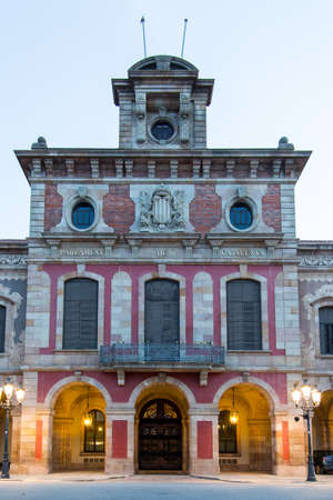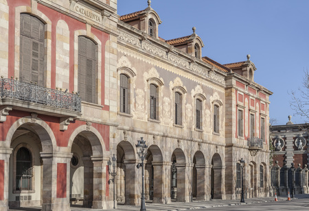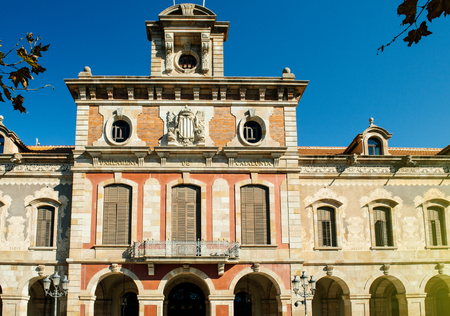 Facade of the Parliament of Catalonia - Parlament de Catalunya building in classical Spanish architecture