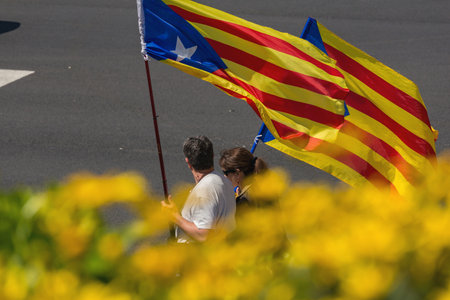 Barcelona, Spain - September 11, 2016: People partaking in a rally in support for the independence of Catalonia in Barcelona, Spain, during its National Day
