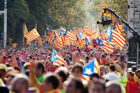 BARCELONA, SPAIN - SEPTEMBER 11, 2014: Rally demanding independence for Catalonia in 300th anniversary of loss of independence (Diada Nacional de Catalunya)