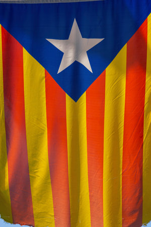 An estelada, the Catalan separatist flag, Barcelona, Catalunya, Spain. Close-up