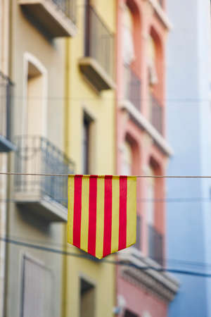 Spain. Catalonia. Flag on the facade of building in city Barcelona