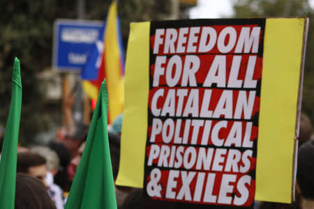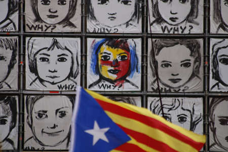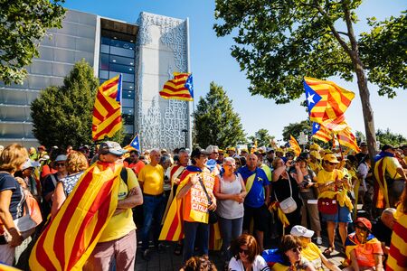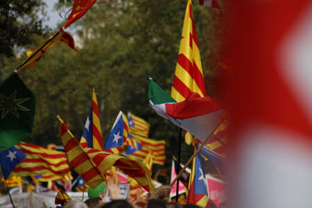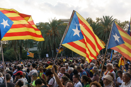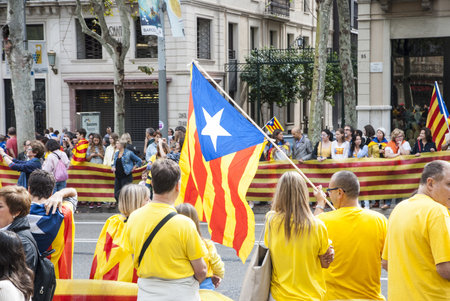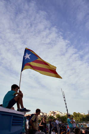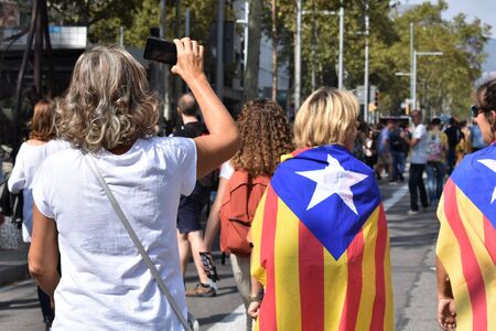 Barcelona, Catalonia, Spain, September 11, 2017: Rally support for independence of Catalunya during the national day