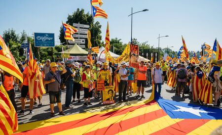 BARCELONA, SPAIN - SEPTEMBER 11, 2018: Hundreds of thousands of Catalans call for independence from Spain on the National Day of Catalonia.