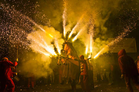 EL VENDRELL, ES - JUL 29: Fireruns at the Festa Major celebrations Jul 29, 2011 in El Vendrell, ES.