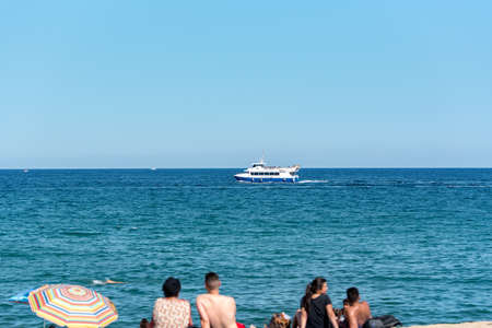 BARCELONA - JUNE 26, 2020: Barceloneta beach with people in summer after COVID 19 on June 26, 2020 in Barcelona, ​​Spain.