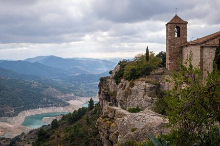 View of the Romanesque church of Santa Maria de Siurana, Tarragona, Spain. Copy space for text