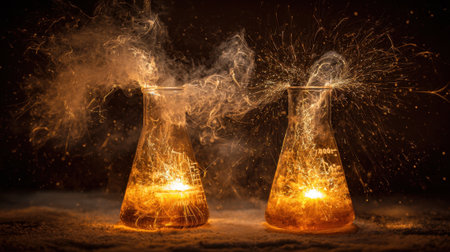 close-up of chemical reaction in laboratory, created with generative ai