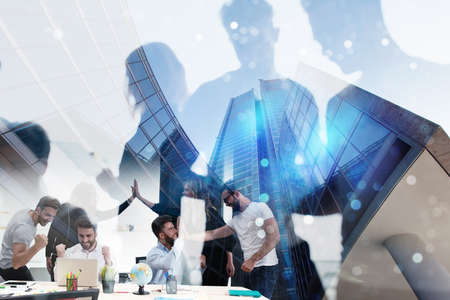 Multi exposure of social network drawing over us dollars bill background. Concept of people connection.