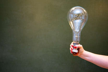 A man holds a glowing light bulb, representing new ideas and inspiration. The image is perfect for business and innovation concepts.