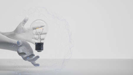 I have an idea and I want to protect it. Patenting an idea. Eureka, I have an idea. Light bulb symbol related to an idea. The light bulb went on. White background.