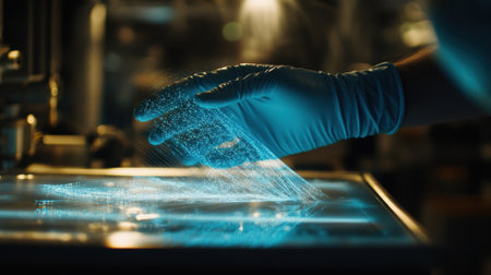 Dynamic medium shot of researcher testing strength of grapheneoxide coated material under stress showcasing durability and reinforcement benefits.