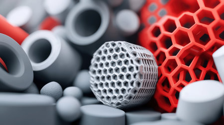 A close-up view of a complex 3D printed lattice structure, showcasing intricate design and advanced manufacturing capabilities.