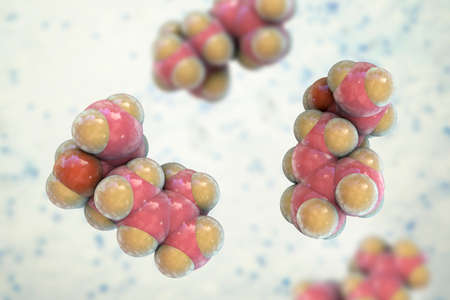 Linalool molecule, 3D illustration. Naturally occurring organic compound found in essential oils of tea tree, coriander, cymbopogon, sweet orange, lavender and other plants, has antiseptic properties