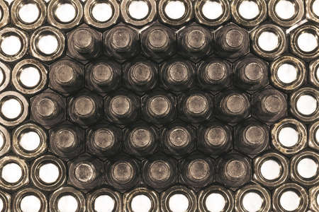 Pattern of bolt and nut arrange on white background as abstract
