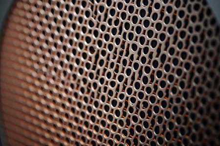 photo of a close-up of a musical column hidden behind a grid with a pattern of rhythmically arranged holes, background image