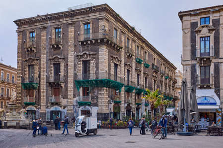 Catania, Italy - 09-23-2022: Duomo square in Catania with historic buildings with beautiful facades