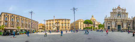 CATANIA, ITALY, APRIL 27, 2017: View of piazza duomo dominated by the cathedral of saint agatha and an elephant fountain in Catania, Sicily, Italy