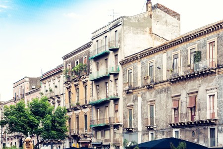 Catania, Sicily, Italy – august 14, 2018: historical street, facade of old buildings