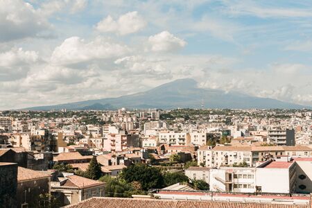 The view of the city of Catania with the view of Etna volcano, Sicily, Italy