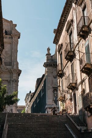 Catania, Sicily, Italy – august 14, 2018: traditional architecture, historical street with old buildings