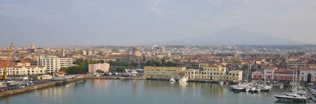 Catania, Italy - 09-23-2022: Aerial panorama of Catania with the port in the background
