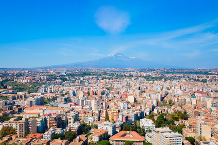 Aerial panorama of Catania and Vulcano Etna on the background, Sicily, Italy