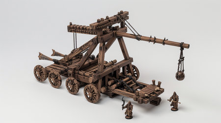Medieval Wooden Catapult On White Background. 3D Illustration
