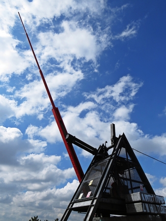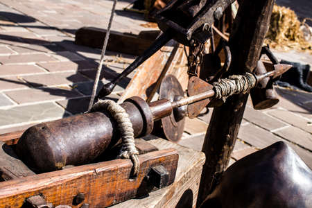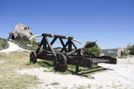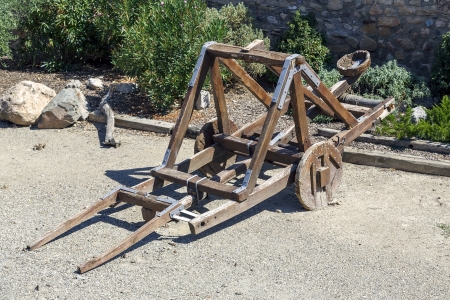 Catapult in the medieval town of Montblanc, Tarragona Spain