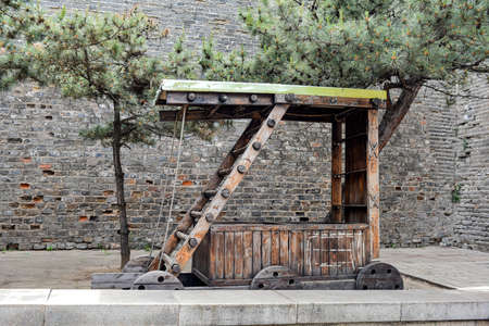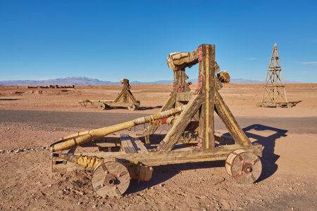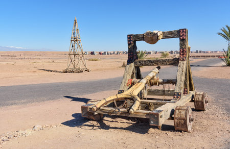 Ouarzazate, Morocco - Jan 4, 2017: Decoration catapult in Atlas Corporation Studios is film studio. Ouarzazate area is film-making location, where Morocco's biggest studios