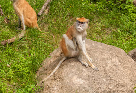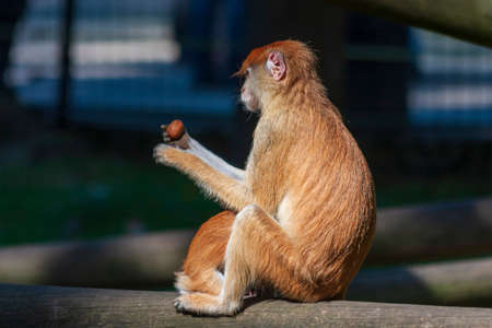 Patas monkey portrait on orange background