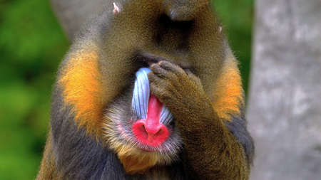 wild mandril monkey in forest