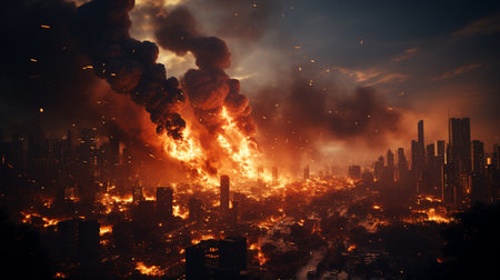 burning city. Generative AI