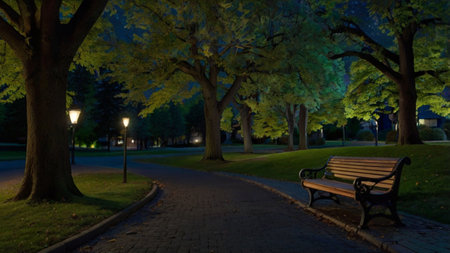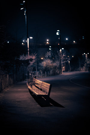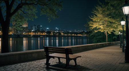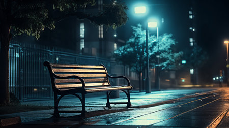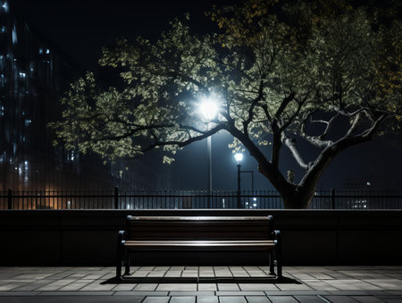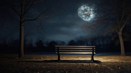 The Serene Solitude of an Empty Bench at Midnight