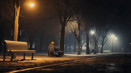 Generative AI Lonely bench in the night station
