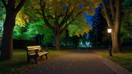 Night time in the city park. A.I.