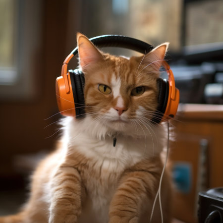Dj Cat on saturday night, disco style background, anthropomorphic animals, AI Generated