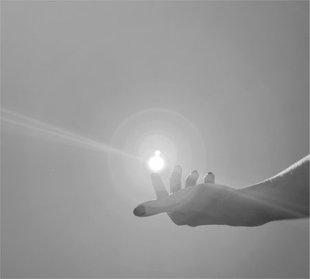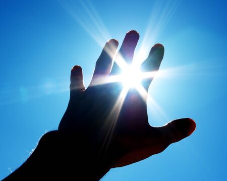 Hand reaching up towards heaven seeking help with sunstar sunshine inspiration guidance