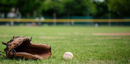 This captivating image features a vintage baseball glove cradling a classic baseball, evoking a sense of nostalgia and charm associated with America's beloved pastime.