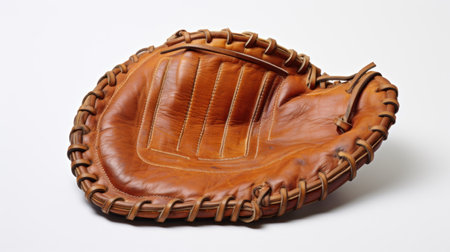 This detailed image features a vintage leather baseball glove isolated on a white background, perfect for sports-themed projects and discussions about athletics.