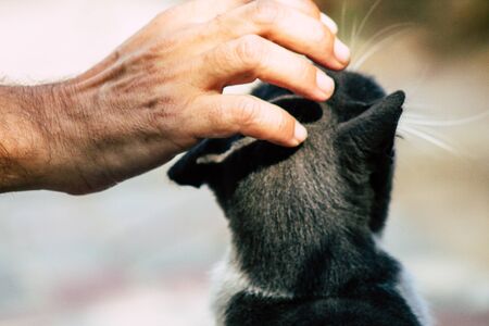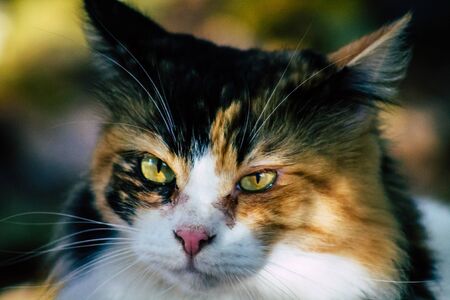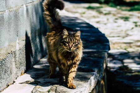 Paphos Cyprus March 03, 2020 View of abandoned domestic cat living in the streets of Paphos in the afternoon