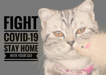 Adorable pet feline and a message to stay home with your cat and stay safe from the covid-19 outbreak