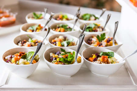 Catering buffet in hotel restaurant. Food styling and restaurant meal serving concept.