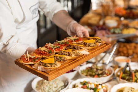 Delicacies and snacks at the buffet or banquet. Catering.snacks on the table at the holiday. banquet snacks. canapes. catering
