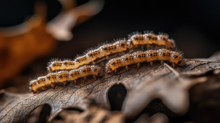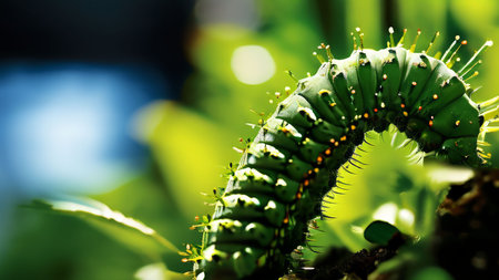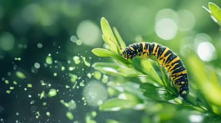 caterpillars munching on leaves, causing holes, created with generative ai