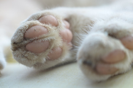 Close-up of cat paws. A cat's paw from the underside