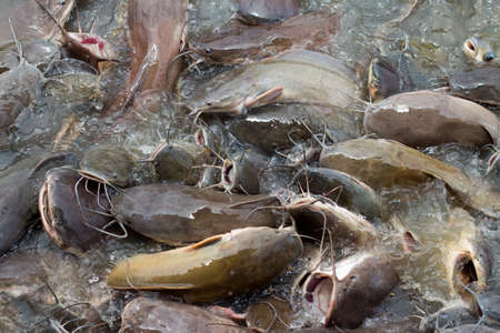 Catfish in Gadi Sagar lake near Jaisalmer in Rajasthan state in India.